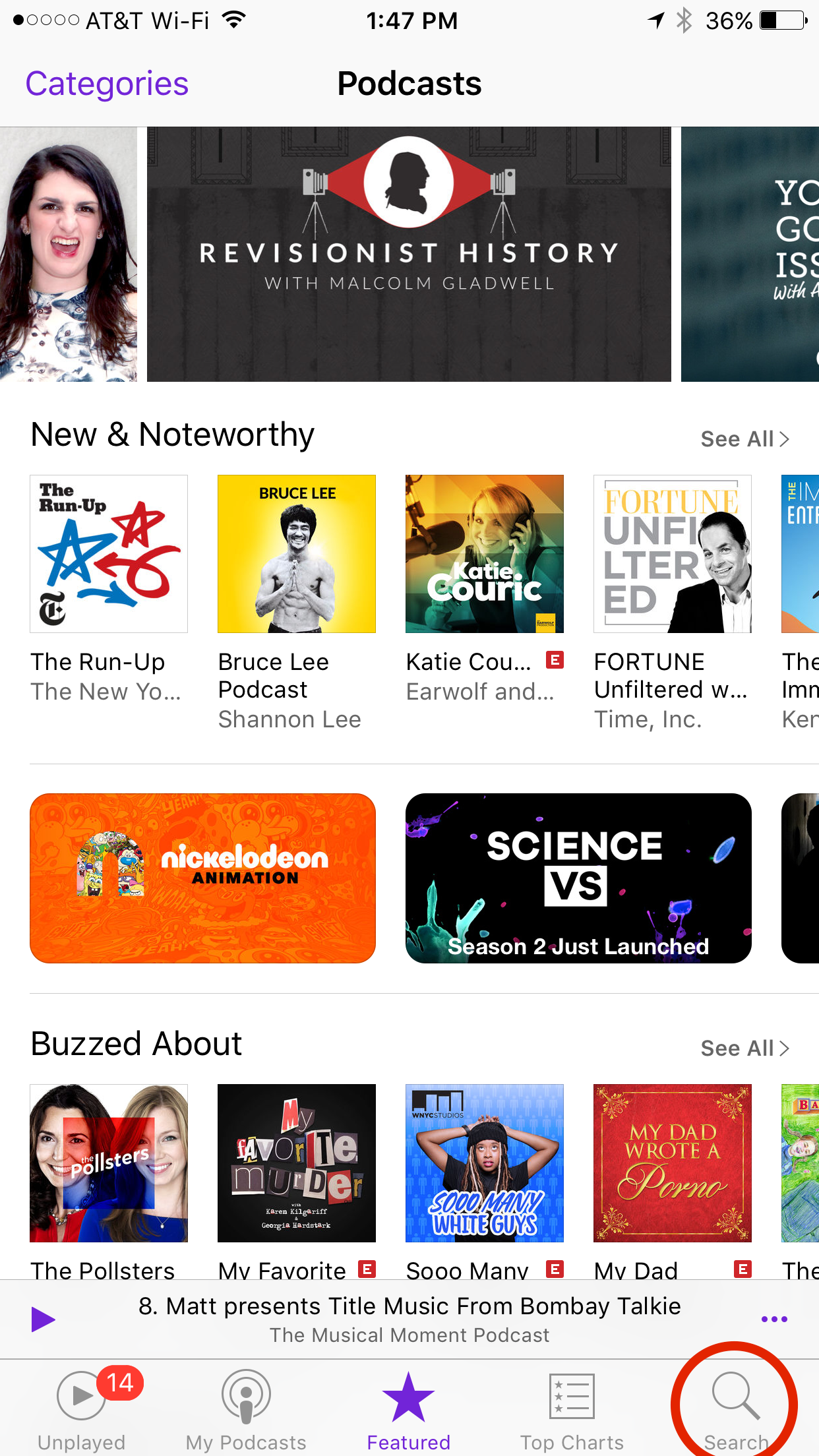 Type "the musical moment". Tap "the musical moment podcast" from the list below.