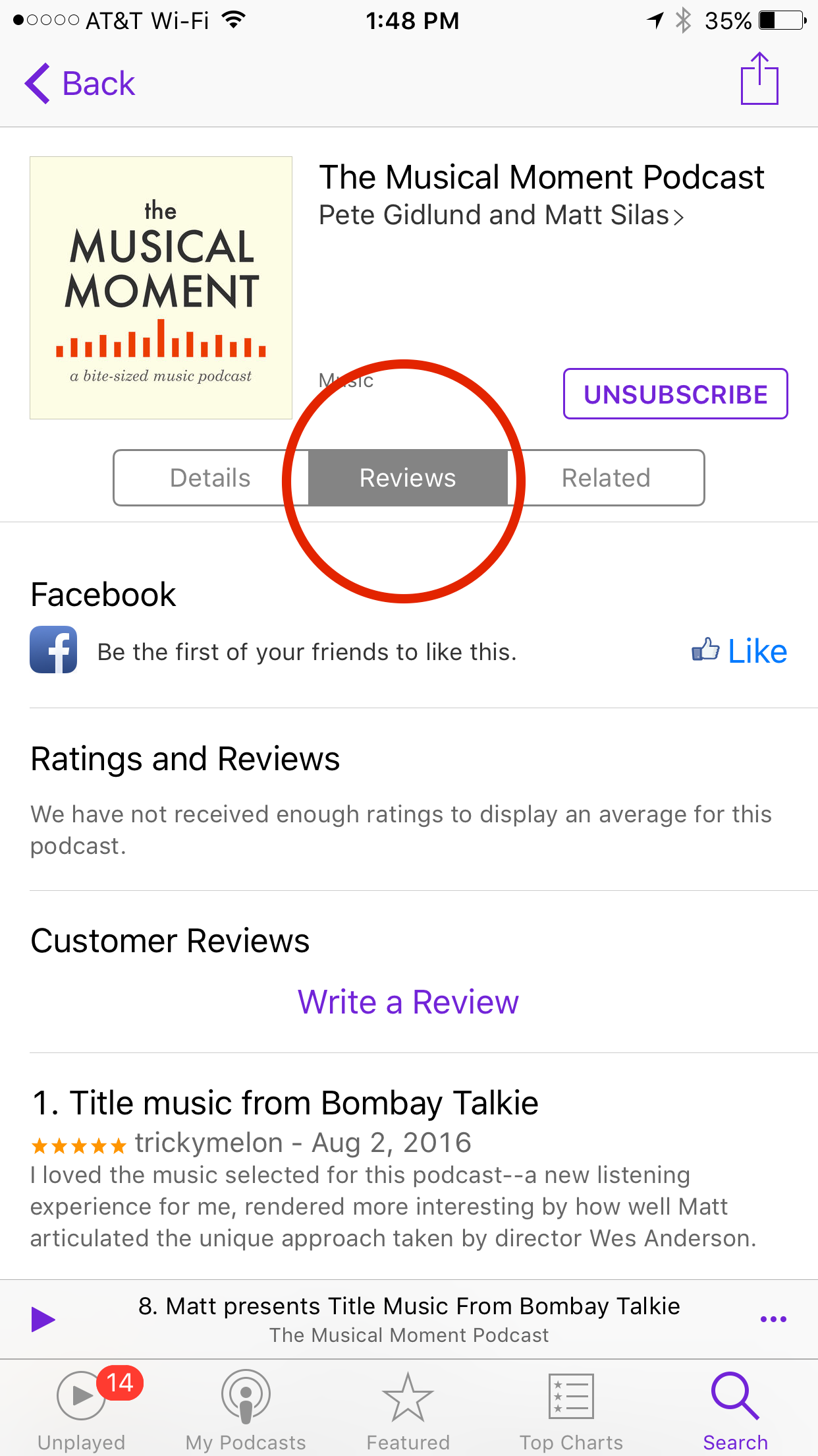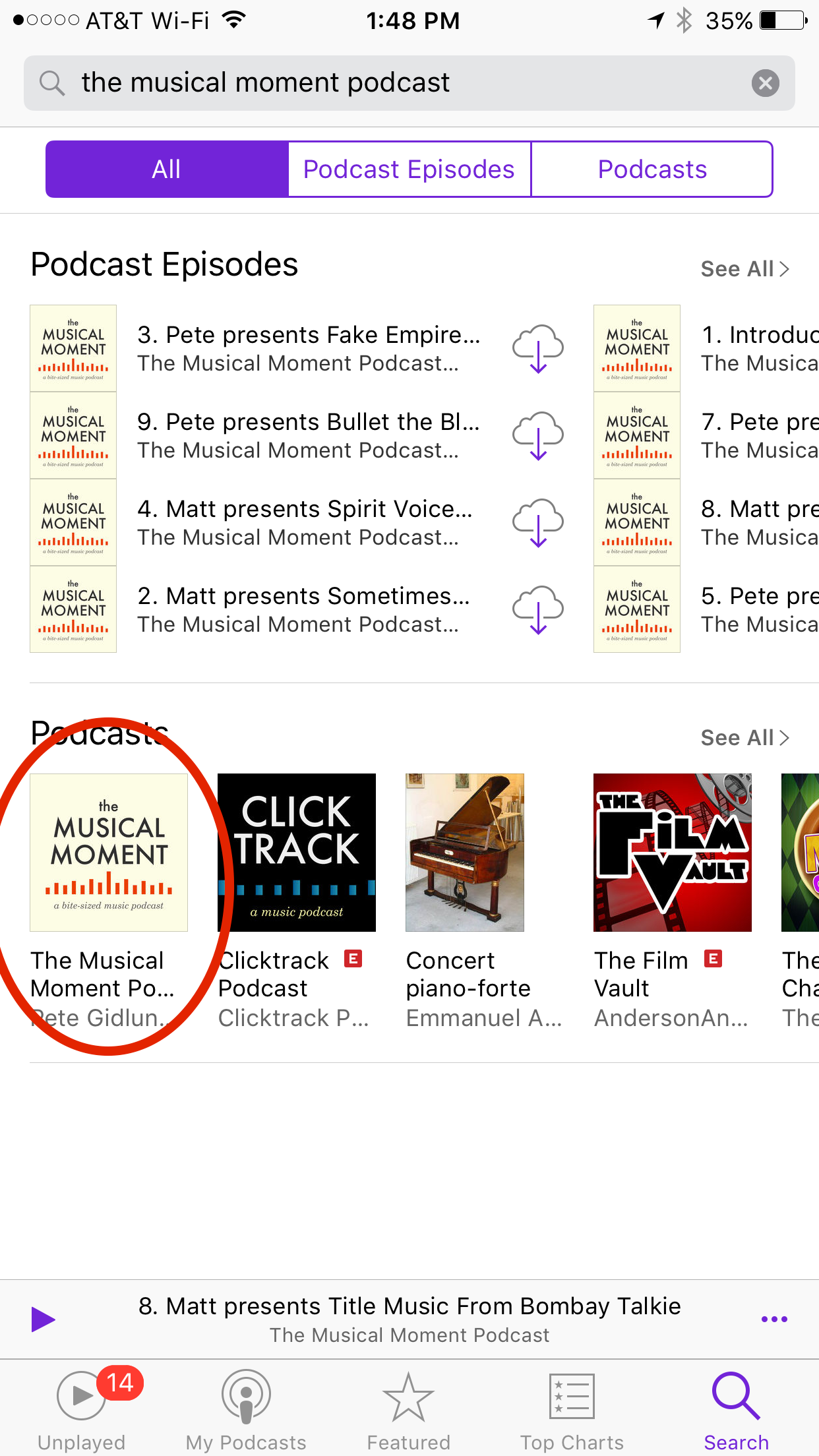 You'll see a bunch of episodes below. Tap on The Musical Moment icon under the Podcasts heading.