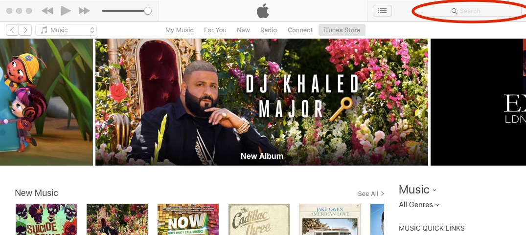 Open iTunes. Click on "iTunes Store". You'll see the search box in the upper right hand corner.